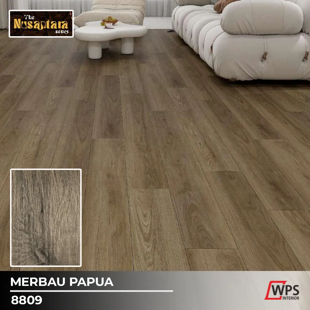 Lantai SPC dilengkapi dengan sistem kunci klik, yang memudahkan pemasangan bahkan bagi pemula. Tidak memerlukan perekat atau alat khusus, sehingga menghemat waktu dan biaya instalasi.