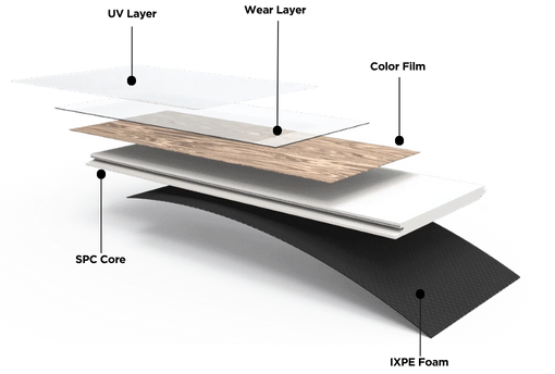 Lantai SPC adalah jenis lantai vinil yang terbuat dari campuran batu kapur dan polimer plastik. Kombinasi ini menciptakan lantai yang sangat kuat, tahan air, dan tahan gores. Lantai SPC memiliki beberapa lapisan, termasuk lapisan pelindung, lapisan dekoratif, lapisan inti SPC, dan lapisan dasar, yang semuanya bekerja bersama untuk memberikan performa optimal.
